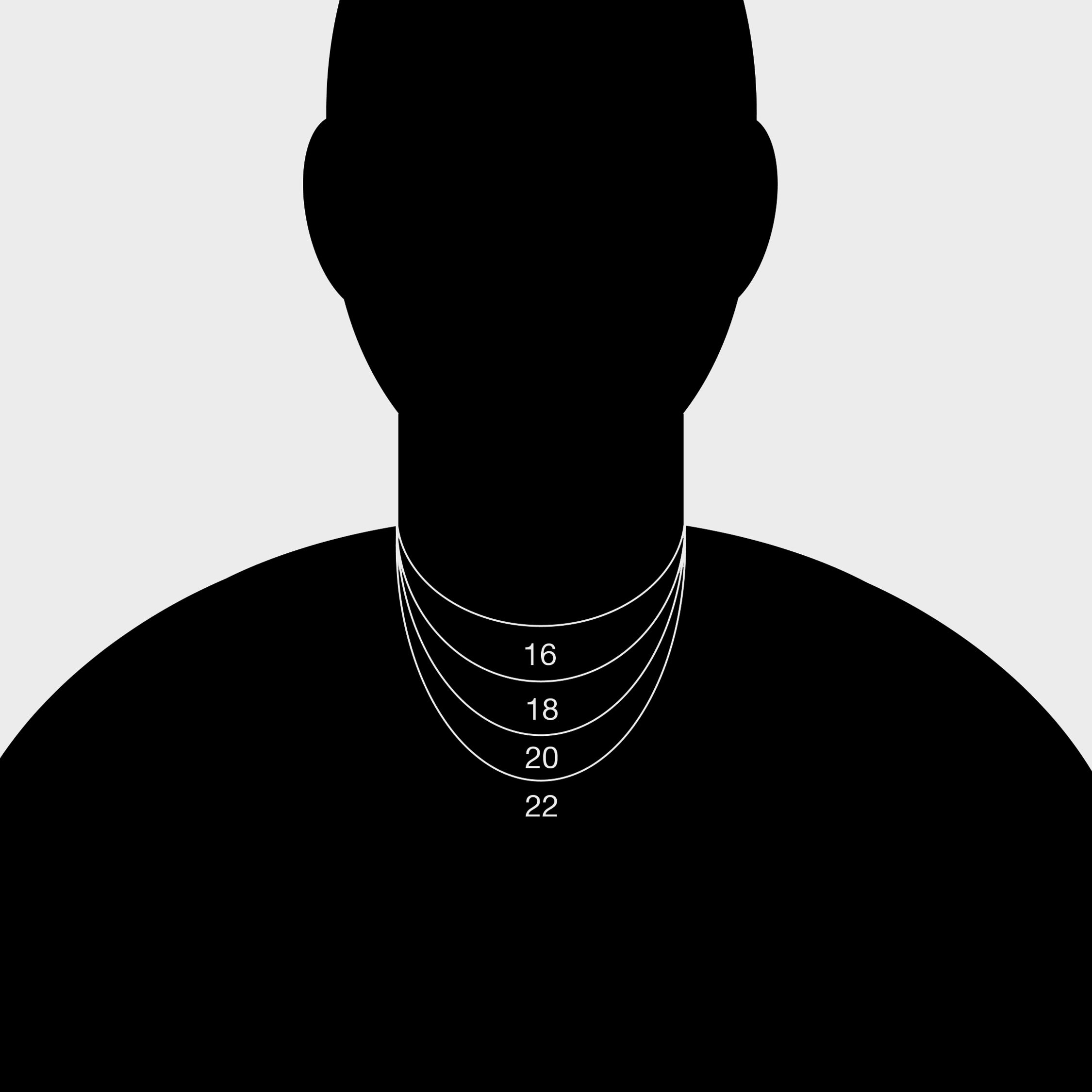 Our chains come in four lengths — 16", 18", 20", 22".